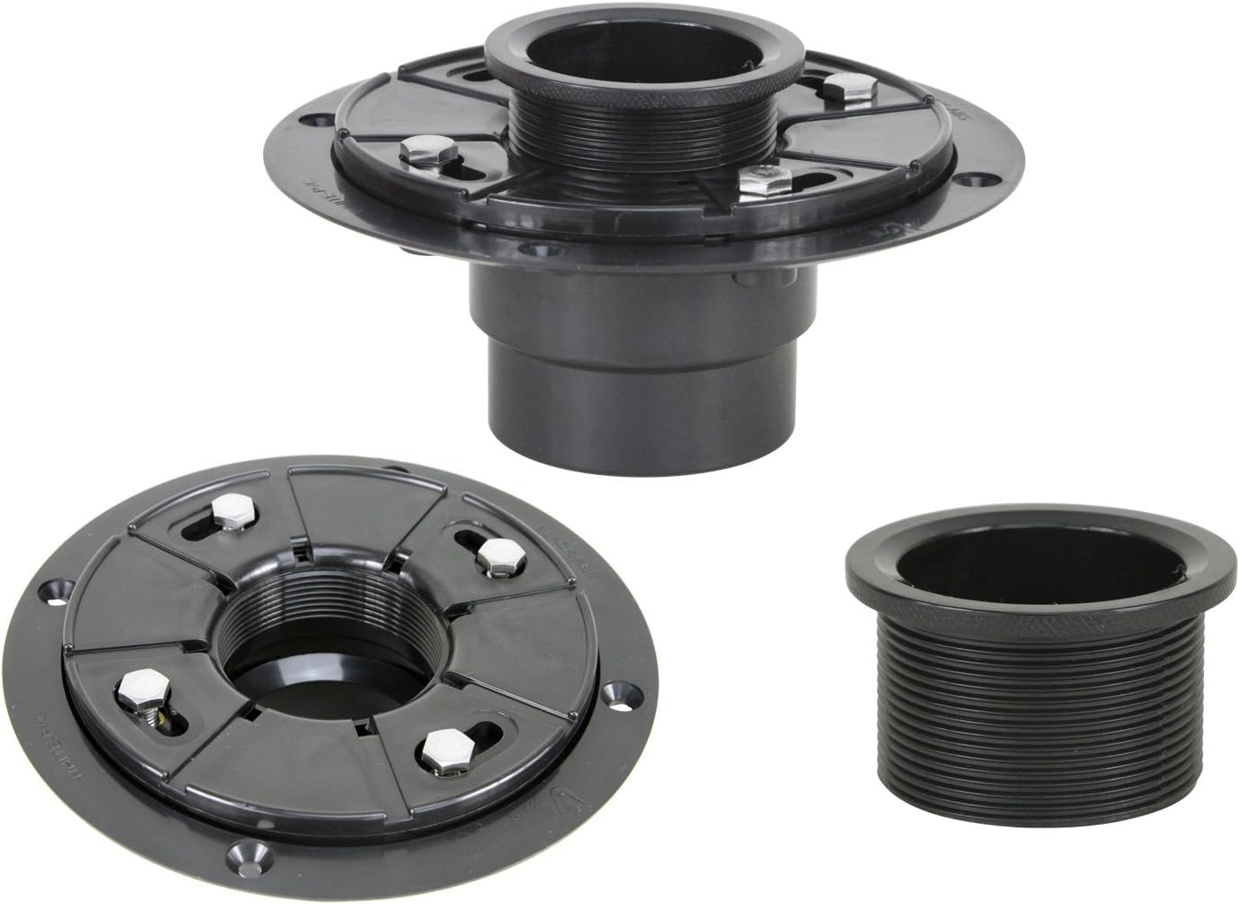 Drain flange, gasket, and shoe tube in the bathtub.